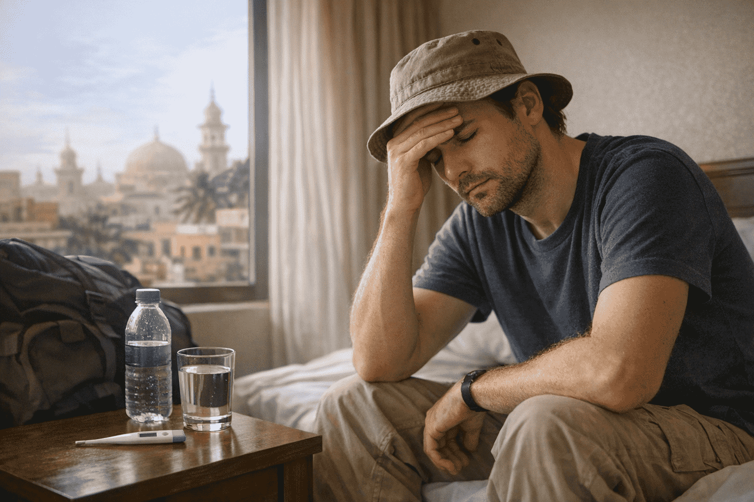 ただ、海外では移動や暑さ、寝不足、脱水が重なって、普段より体調が崩れやすい環境になりやすいです。「まだ何とか動ける」ではなく、「この先悪くなりそうか」で見るのが大事です。私なら1日ほど様子を見て、悪化してきたり新しい症状が出るなら、受診するかを考え始めます。